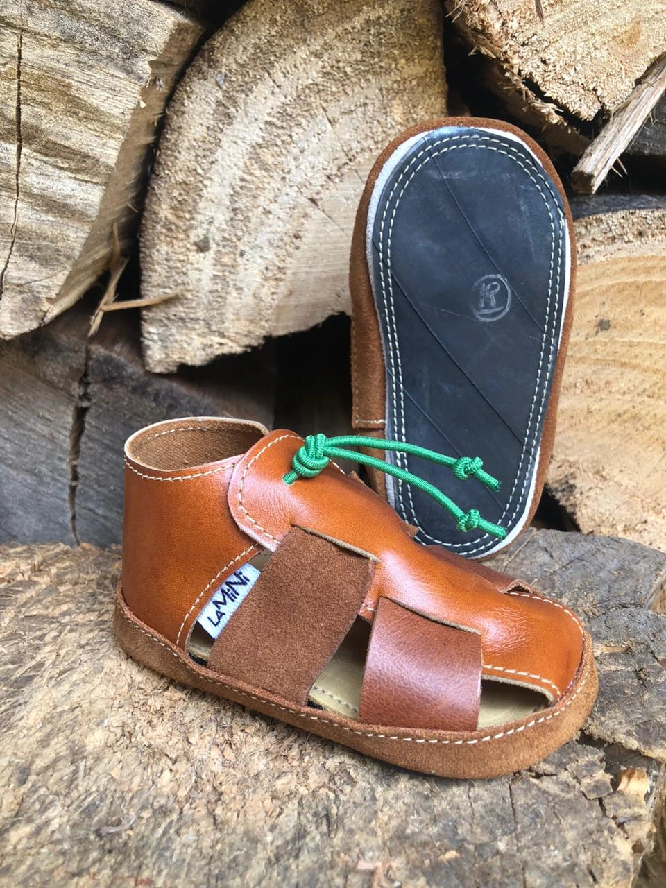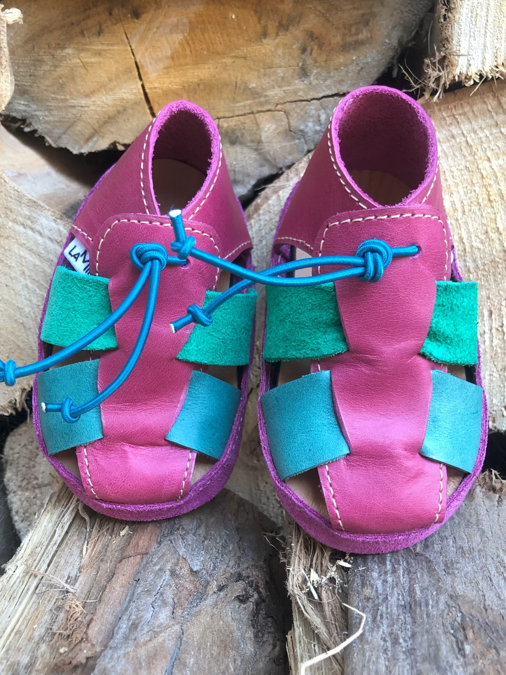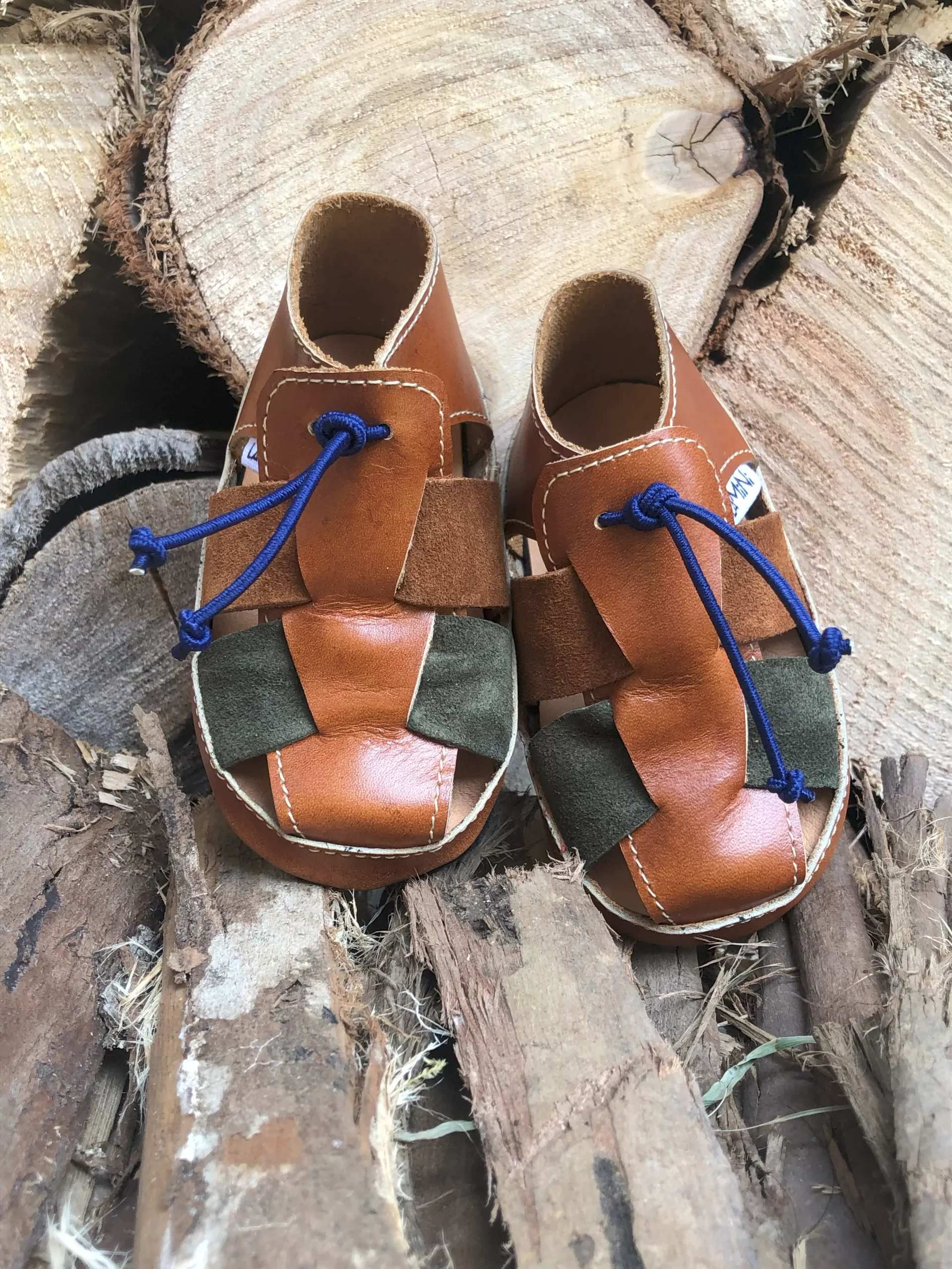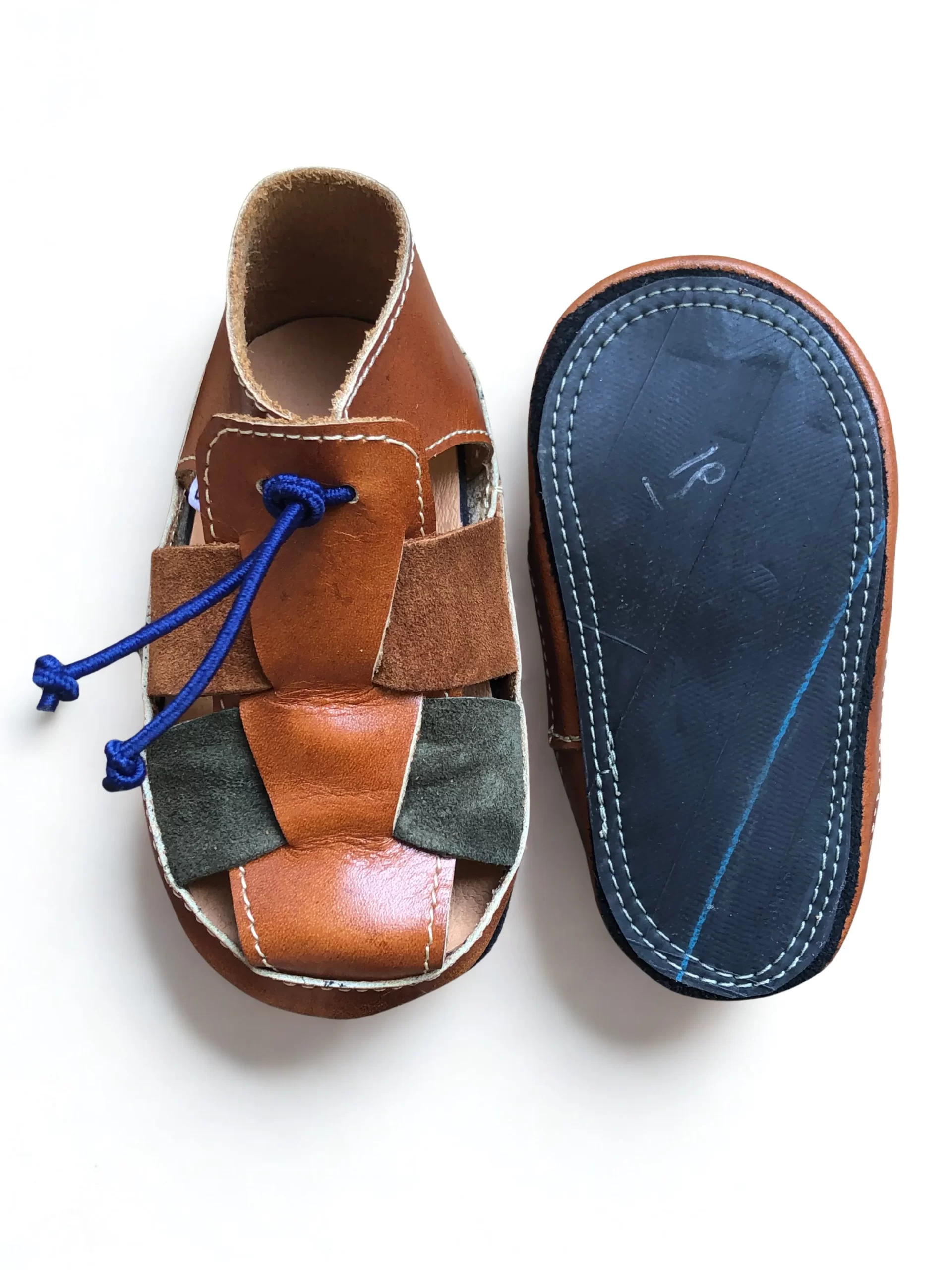 La plantilla de badana (cuero) ofrece suavidad y adaptabilidad, mientras que la suela antideslizante de cámara de bicicleta reutilizada protege sin restringir el movimiento.
