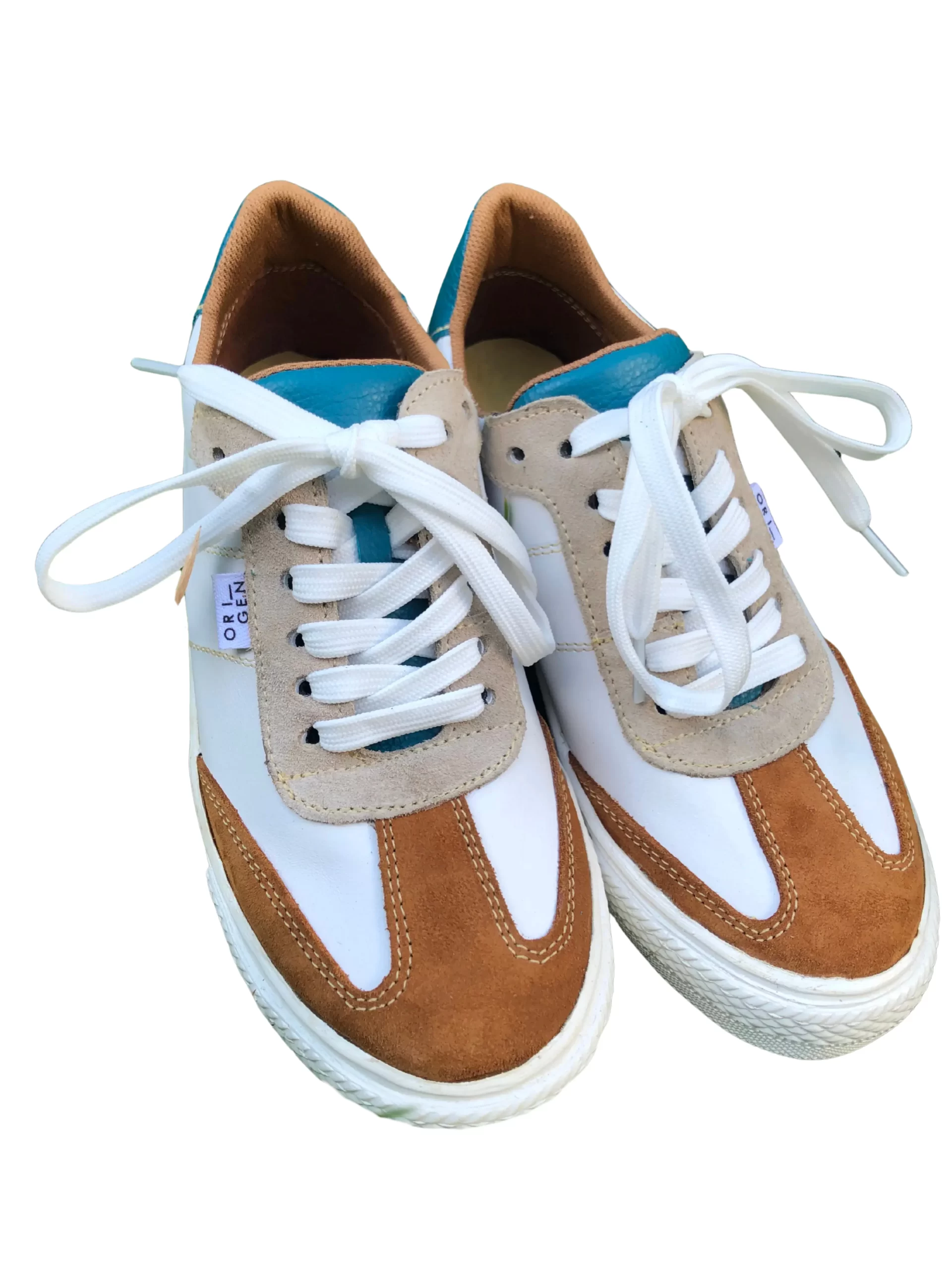 Zapatillas elaboradas a mano en cuero natural, con forro interior de tela respirable que favorece la ventilación del pie. La plantilla de badana (cuero suave) aporta confort y adaptación, ideal para usar durante todo el día.