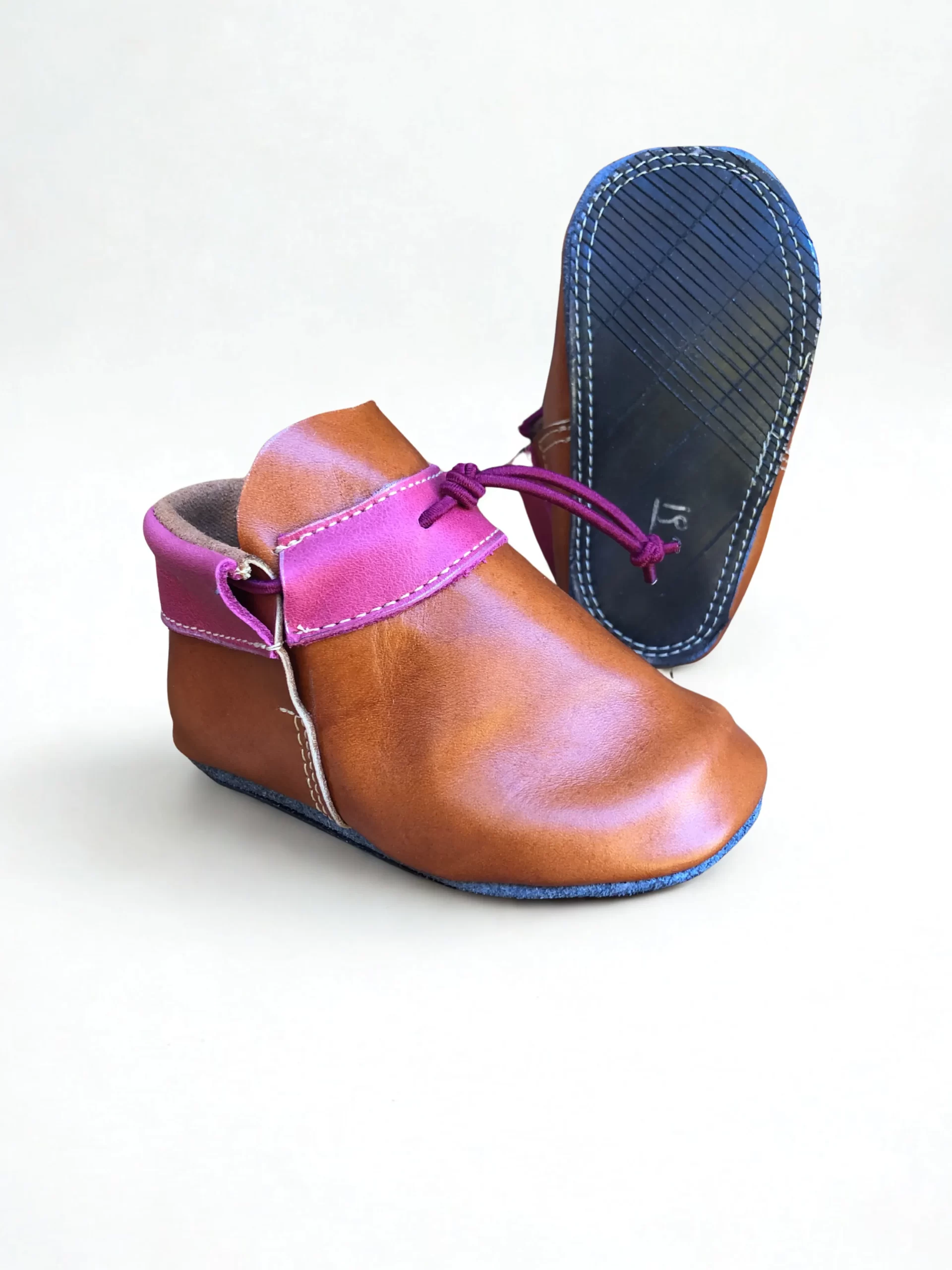 Cuenta con plantilla de badana (cuero), es totalmente respirable, y su suela extrablanda y antideslizante está hecha de cámara de bicicleta reutilizada.